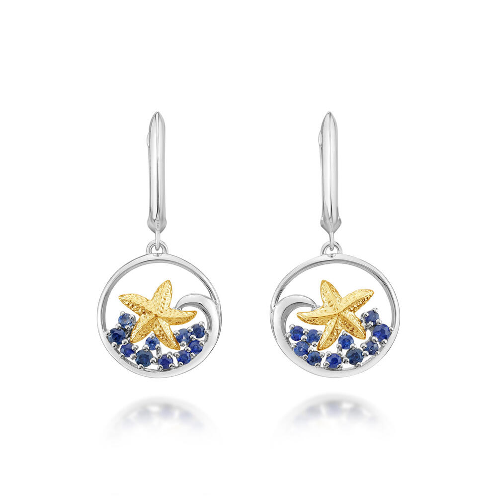 Sterling Silver /14K Yellow Gold Graduated Blue Sapphire Starfish Earrings. Total gem weight: 0.42 ct.