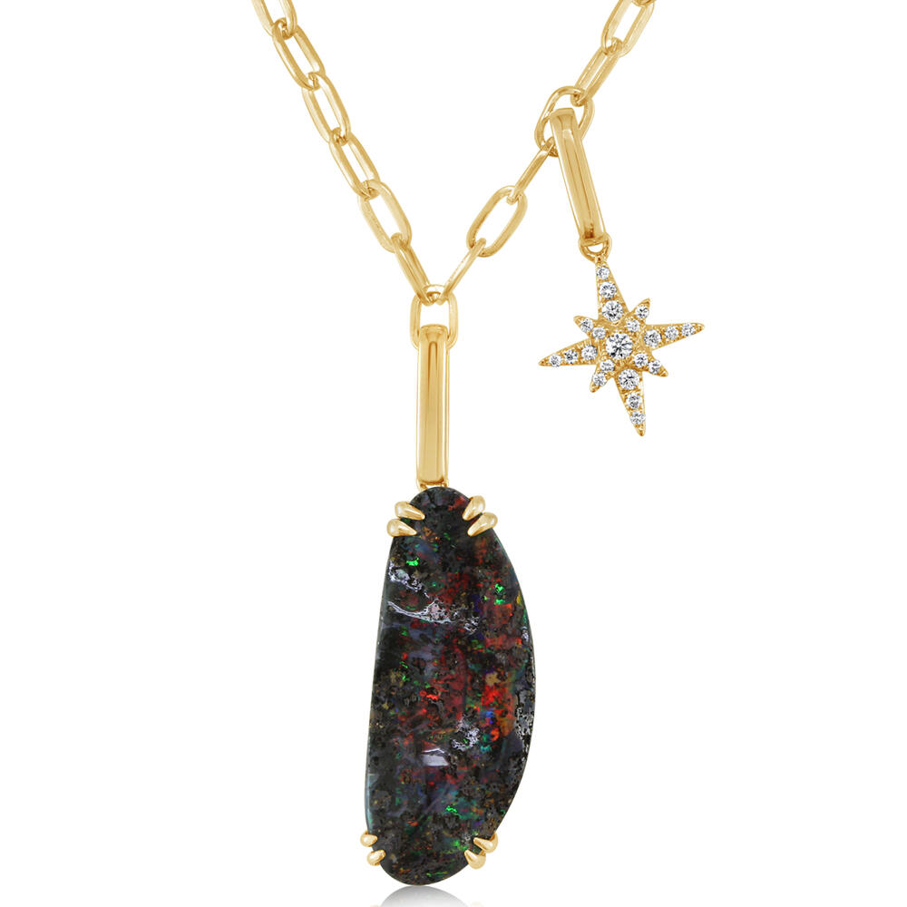 14K Yellow Gold Australian Boulder Opal/Diamond Star Neckpiece. Sample Image. Actual piece might differ from current image. Total gem weight: Varies