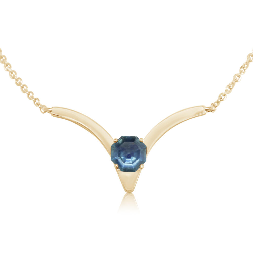 14K Yellow Gold Montana Sapphire Neckpiece. Total gem weight: 0.50 ct.