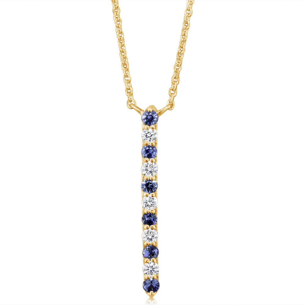 14K Yellow Gold Sapphire/Diamond Neckpiece. Total gem weight: 0.24 ct.