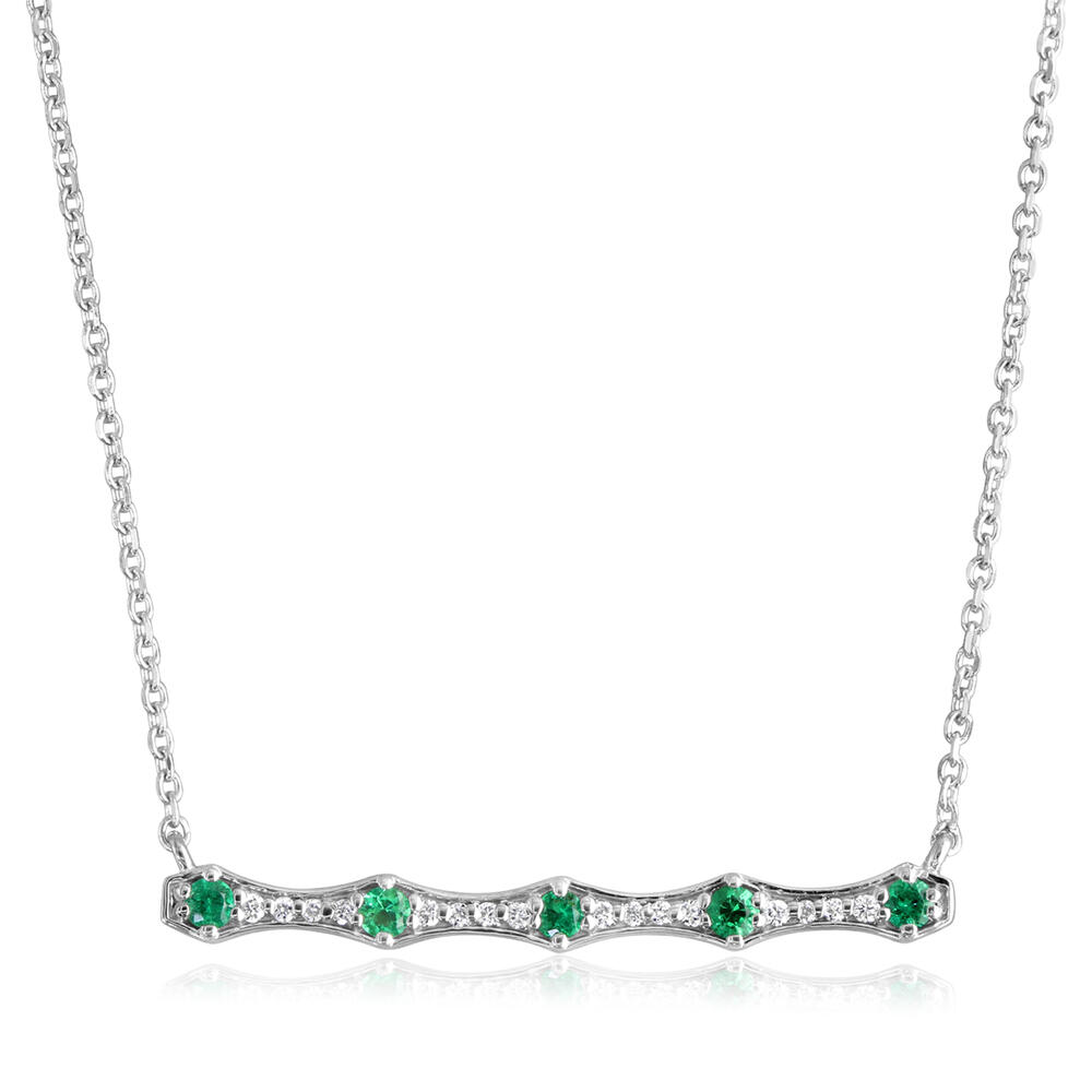 14K White Gold Emerald/Diamond Neckpiece. Total gem weight: 0.15 ct.