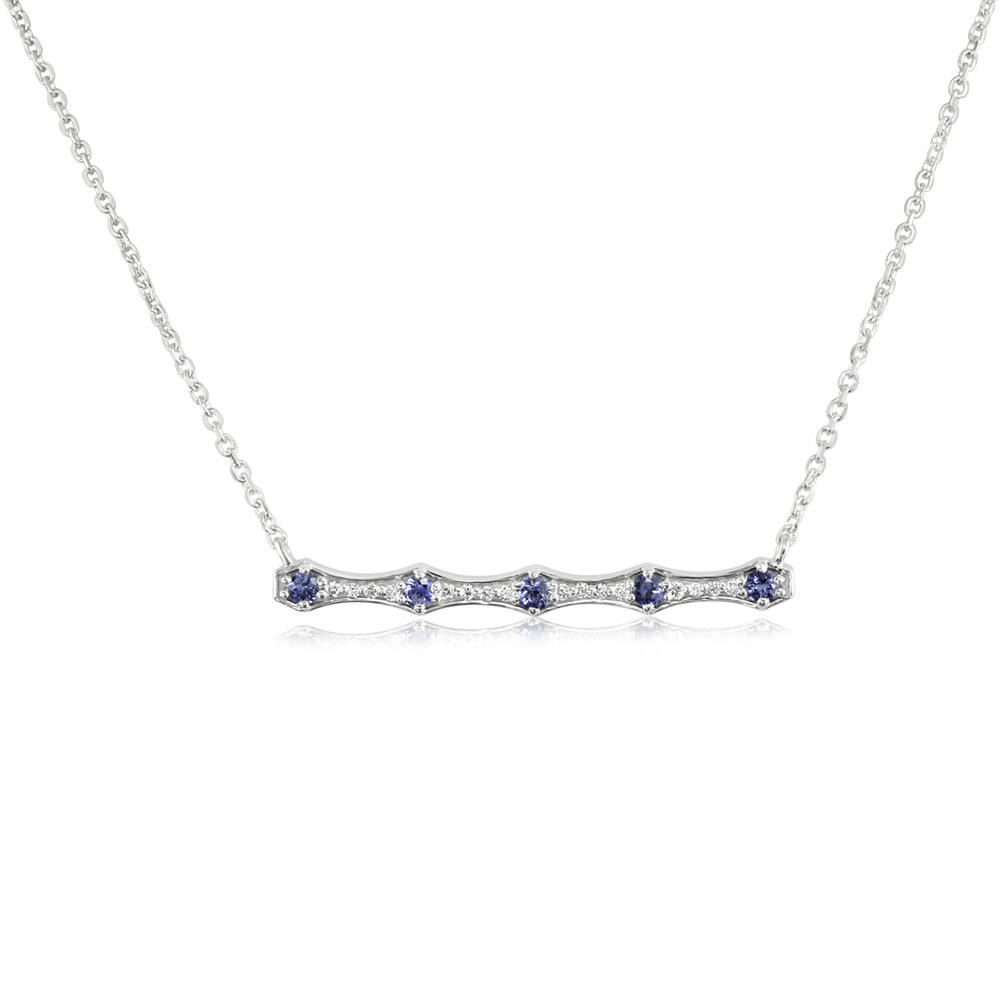 14K White Gold Sapphire/Diamond Neckpiece “. Total gem weight: 0.20 ct.