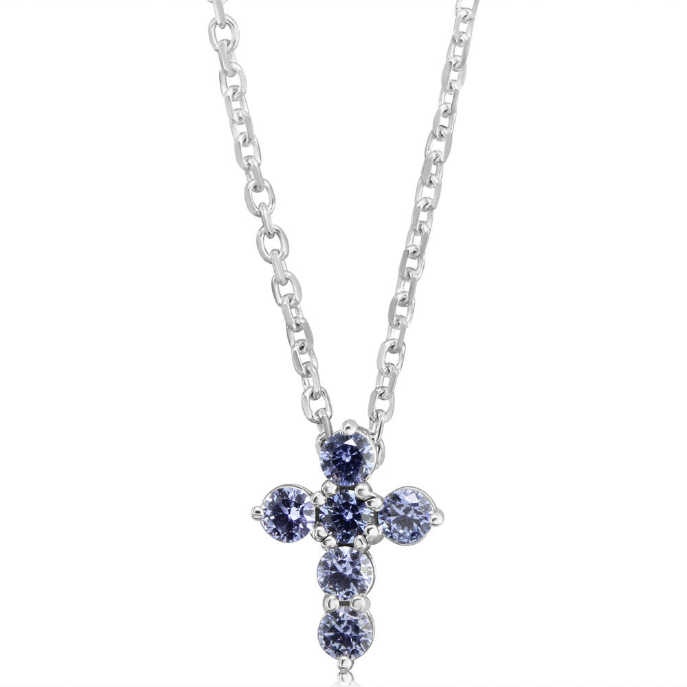 14K White Gold Yogo Sapphire Cross Neckpiece. Total gem weight: 0.24 ct.