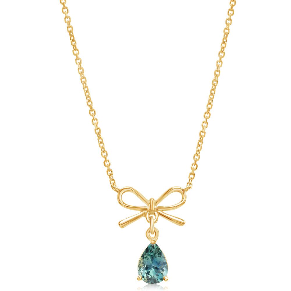 14K Yellow Gold Montana Sapphire Bow Neckpiece. Total gem weight: 0.95 ct.