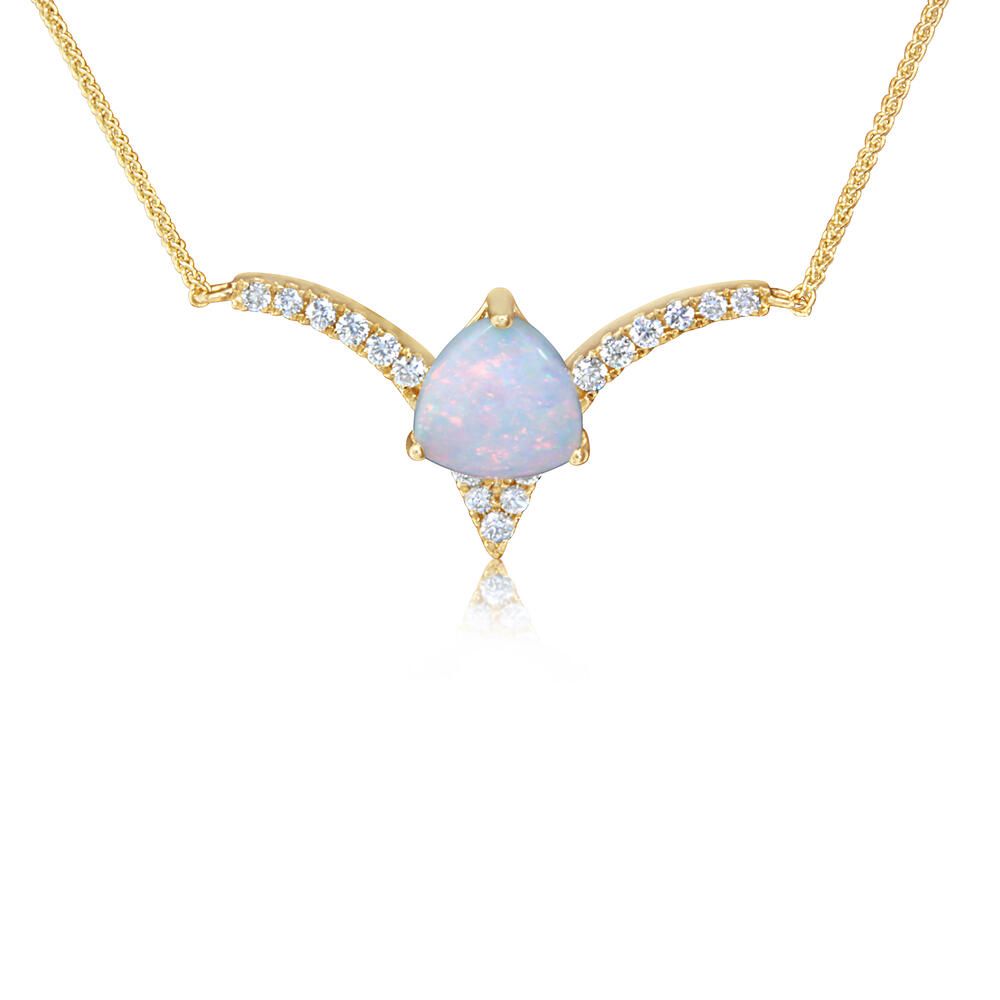 14K Yellow Gold Australian Opal/Diamond Neckpiece. Total gem weight: 0.58 ct.