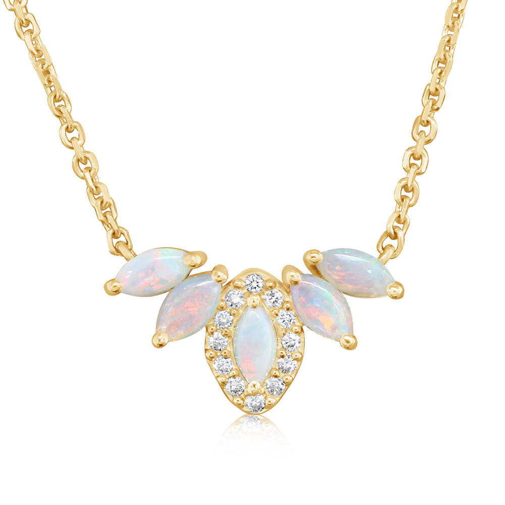 14K Yellow Gold Australian Opal/Diamond Neckpiece. Total gem weight: 0.25 ct.