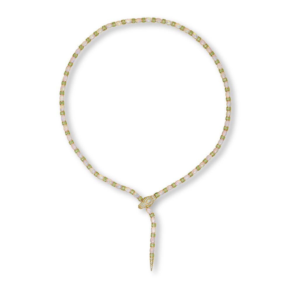 18K Yellow Gold Australian Opal/Tsavorite/Diamond Snake Neckpiece