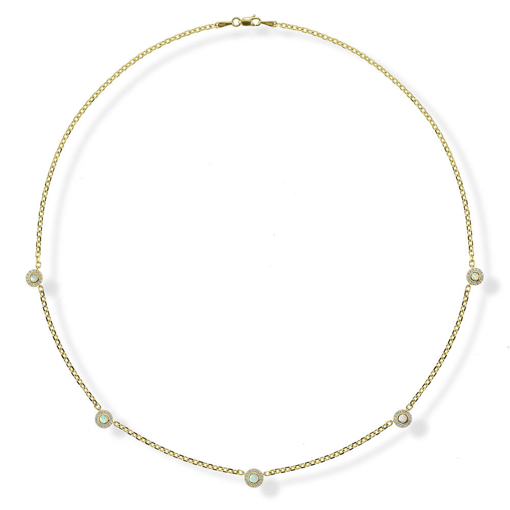 14K Yellow Gold Australian Opal /Diamond Neckpiece. Sample Image. Actual piece might differ from current image. Total gem weight: 0.55 ct.