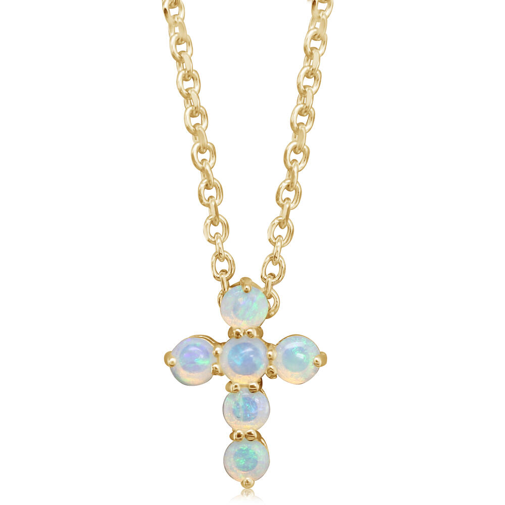 14K Yellow Gold Australian Opal Cross Neckpiece. Total gem weight: 0.14 ct.
