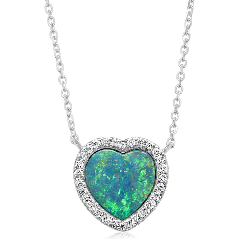 14K White Gold Australian Opal Doublet/Diamond Neckpiece. This is a one of a kind piece. Total gem weight: 1.71 ct.