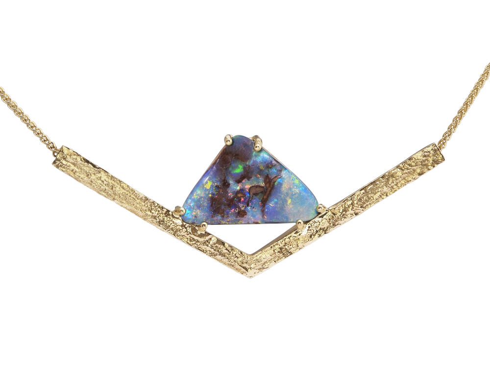 14K Yellow Gold Australian Boulder Opal Neckpiece. This is a one of a kind piece. Total gem weight: 7.46 ct.