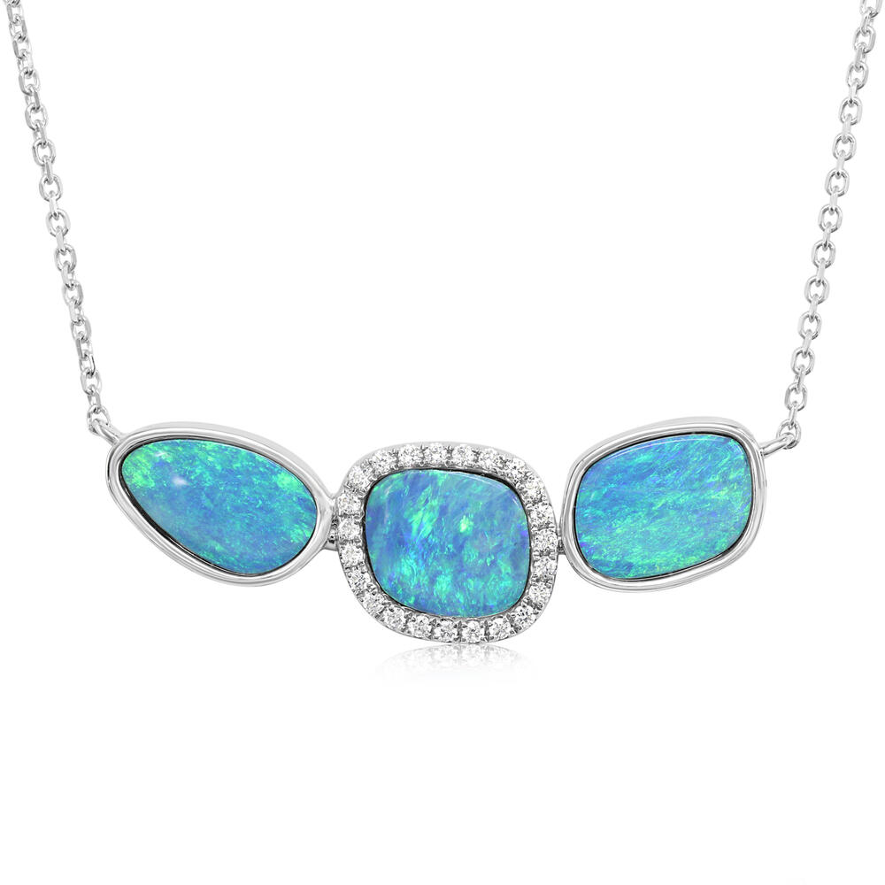 14K White Gold Australian Opal Doublet/Diamond Neckpiece. This is a one of a kind piece. Total gem weight: 4.02 ct.