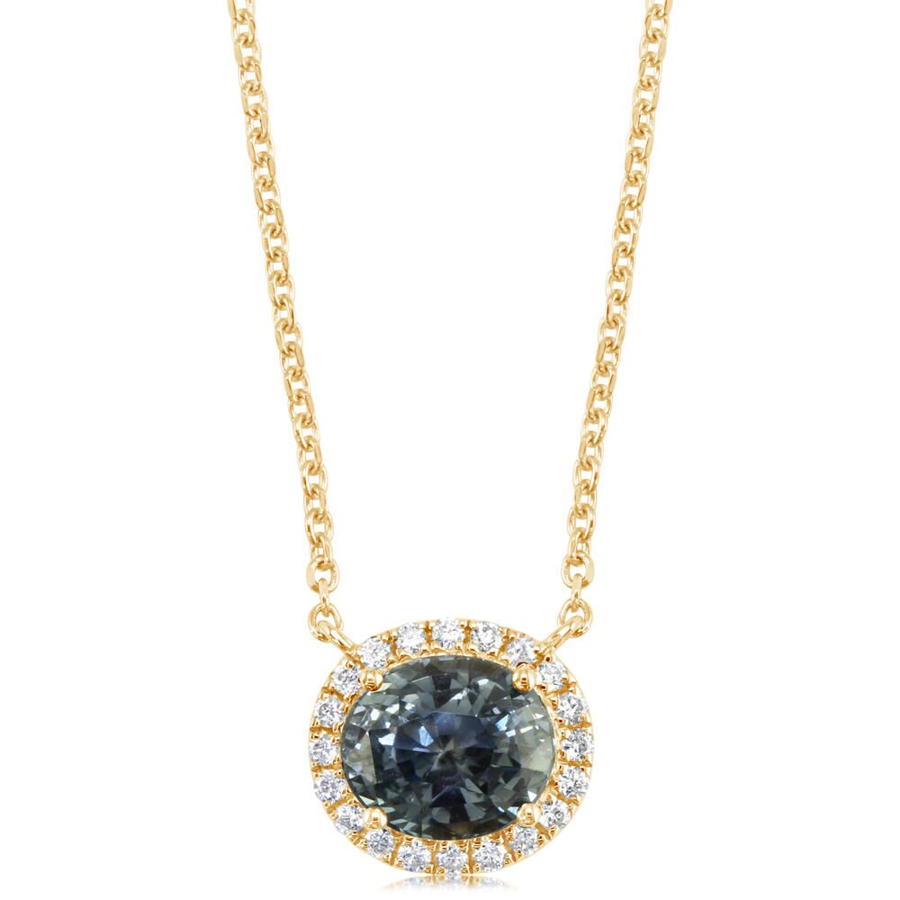 14K Yellow Gold Oval Montana Sapphire/Diamond Neckpiece. This is a one of a kind piece. Total gem weight: 1.66 ct.