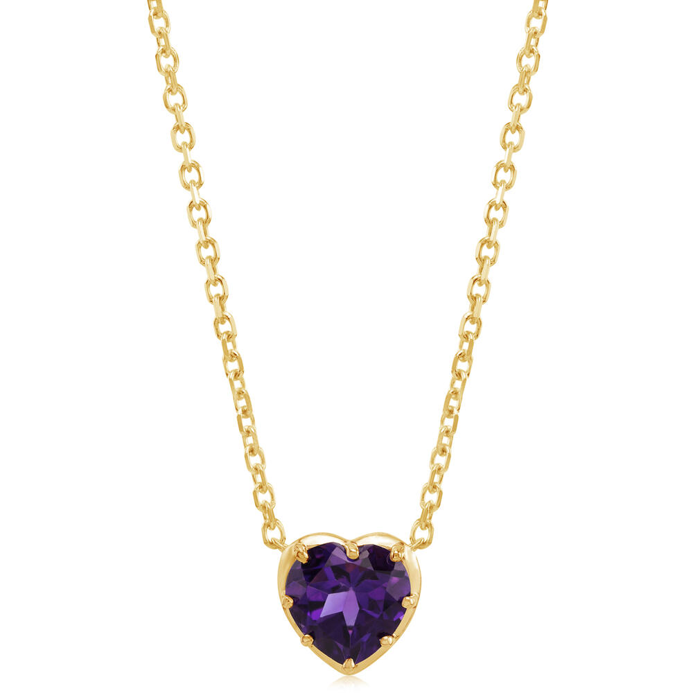 14K Yellow Gold 8mm Heart Amethyst Neckpiece. Total gem weight: 1.30 ct.