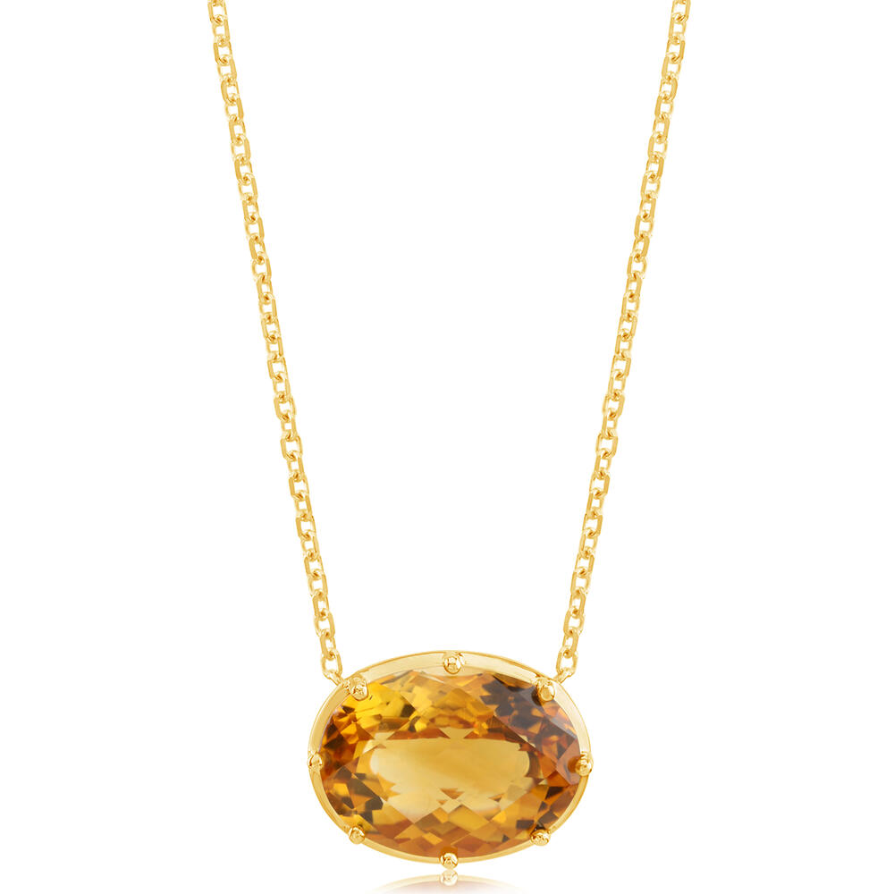 14K Yellow Gold 16×12 mm Oval Checkerboard Citrine Neckpiece. This is a one of a kind piece. Total gem weight: 9.15 ct.