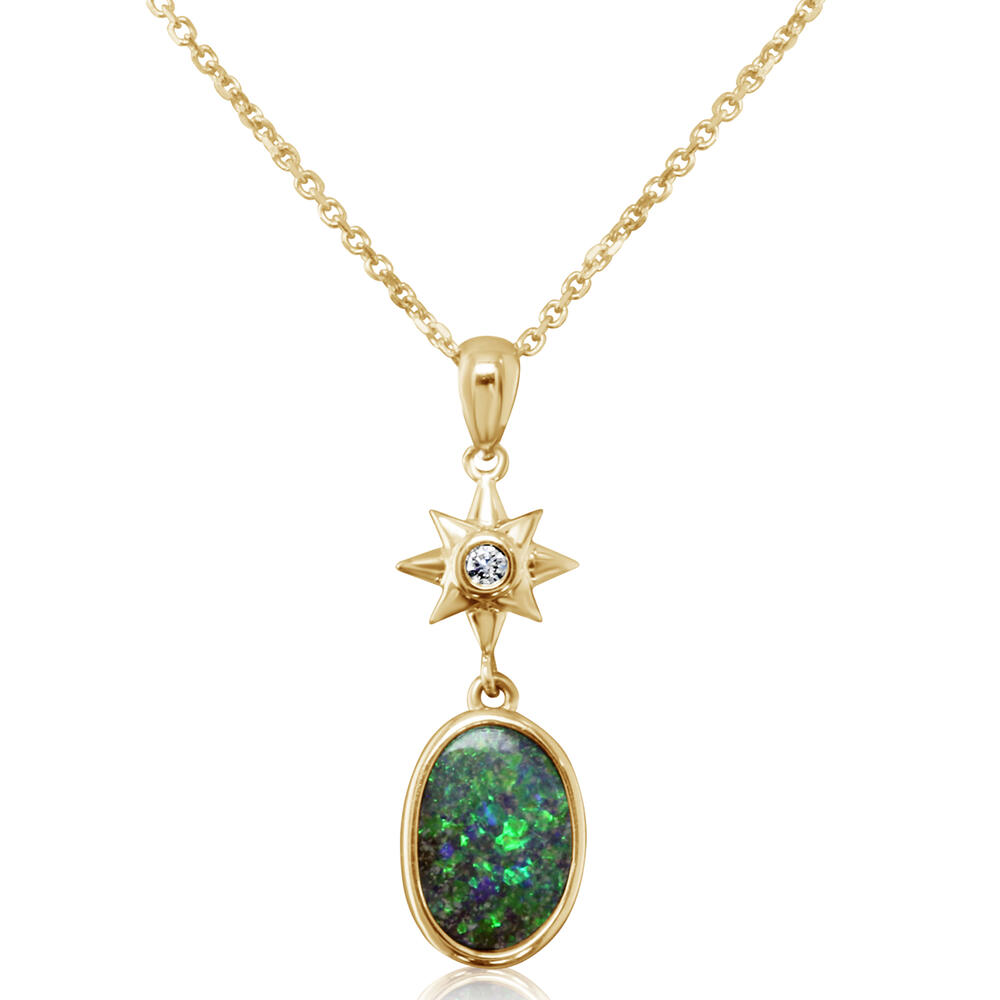 14K Yellow Gold Australian Boulder Opal/Diamond Star Pendant. Pendant does not include a chain unless specified. Sample Image. Actual piece might differ from current image. Total gem weight: Varies