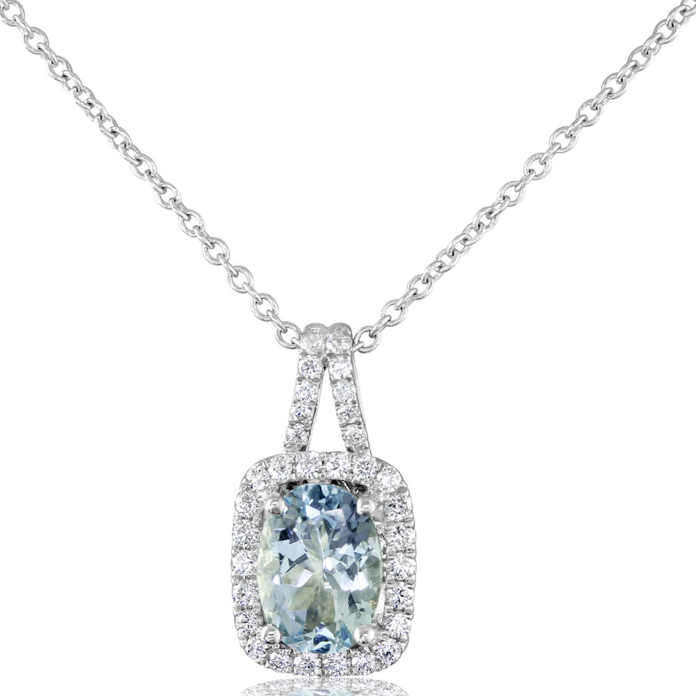 14K White Gold Aquamarine/Diamond Pendant. Pendant does not include a chain unless specified. Total gem weight: 0.90 ct.