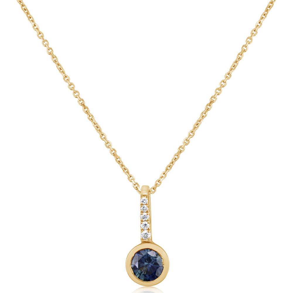 14K Yellow Gold Montana Sapphire/Diamond Pendant. Pendant does not include a chain unless specified. Total gem weight: 1.20 ct.