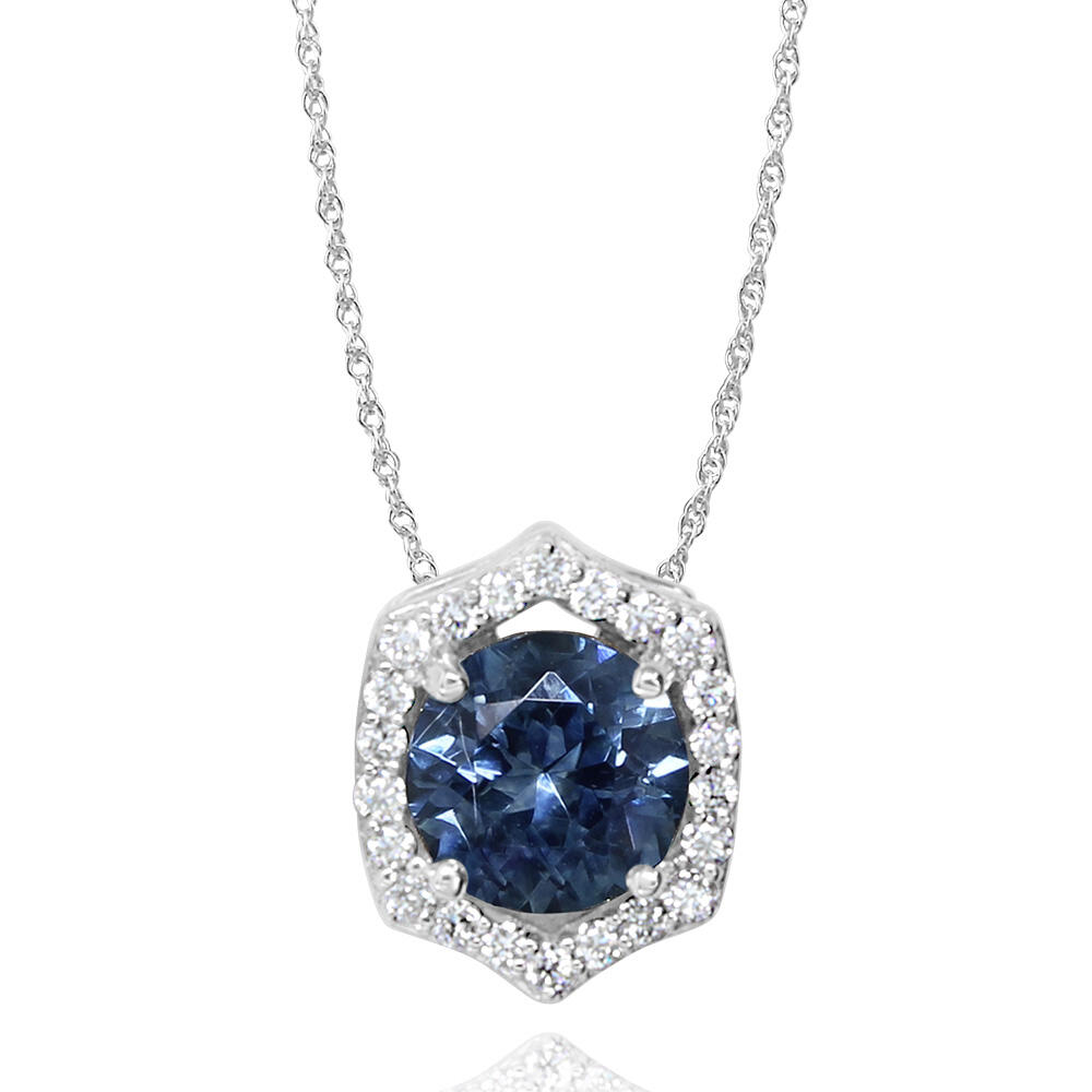 14K White Gold Montana Sapphire/Diamond Pendant. Pendant does not include a chain unless specified. Total gem weight: 1.20 ct.