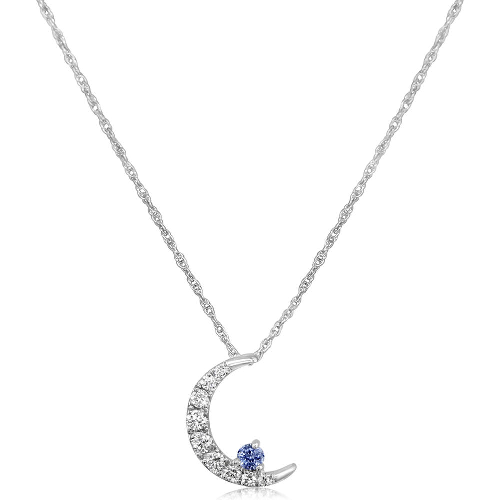 14K White Gold Sapphire/Diamond Moon Pendant. Pendant does not include a chain unless specified. Total gem weight: 0.05 ct.