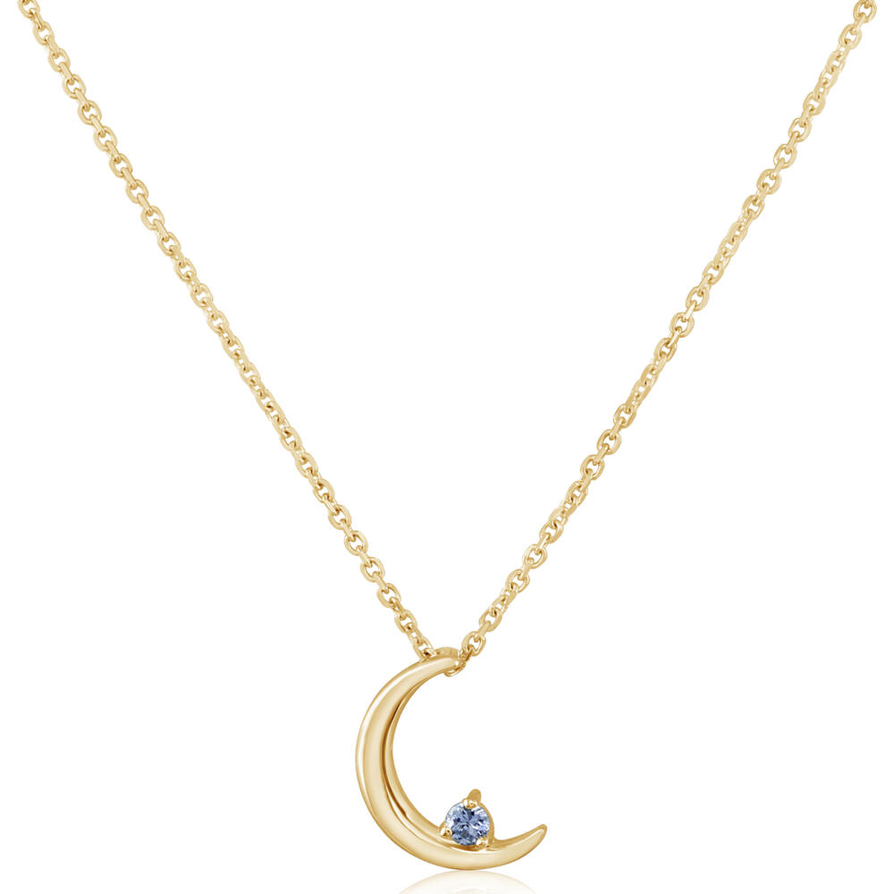 14K Yellow Gold Sapphire Moon Pendant. Pendant does not include a chain unless specified. Total gem weight: 0.05 ct.