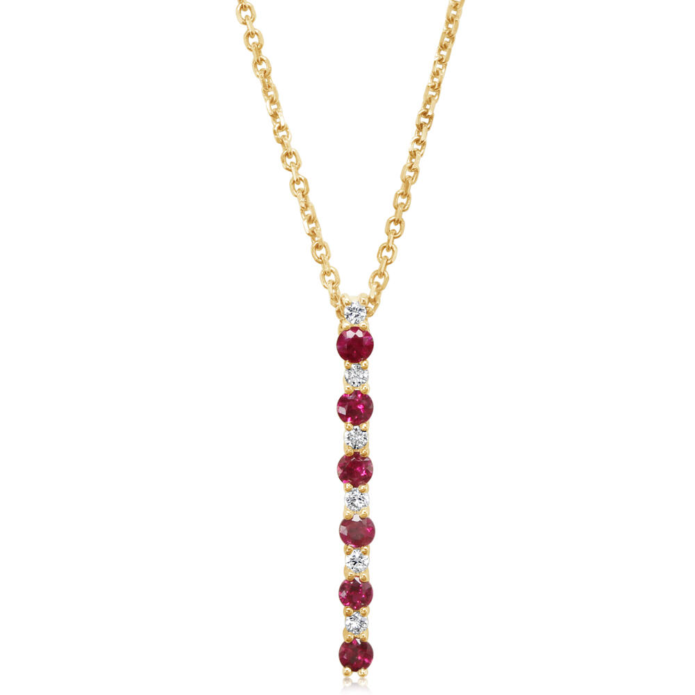 14K Yellow Gold Ruby/Diamond Pendant. Pendant does not include a chain unless specified. Total gem weight: 0.30 ct.
