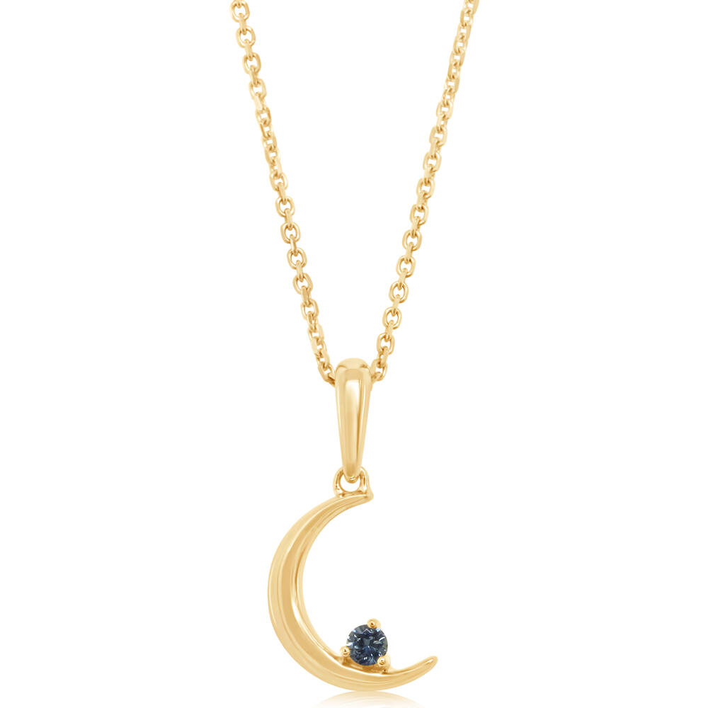 14K Yellow Gold Montana Sapphire Crescent Moon Pendant with Bail. Pendant does not include a chain unless specified. Total gem weight: 0.05 ct.