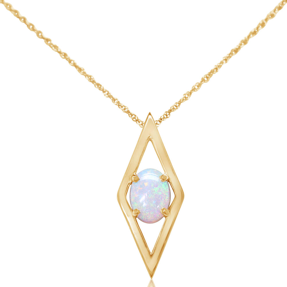 14K Yellow Gold Australian Opal Pendant. Pendant does not include a chain unless specified. Total gem weight: 0.46 ct.