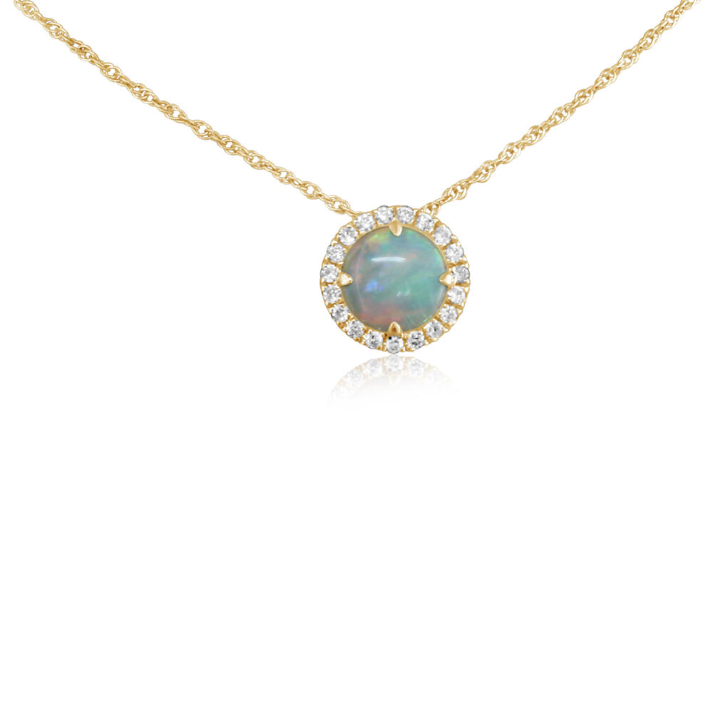 14K Yellow Gold Australian Opal/Diamond Pendant. Pendant does not include a chain unless specified. Total gem weight: 0.54 ct.