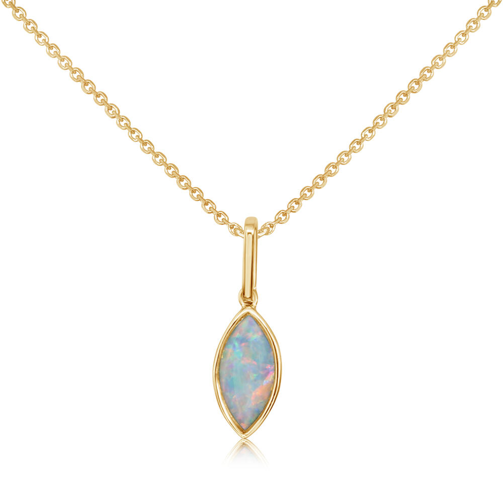14K Yellow Gold Australian Opal Pendant. Pendant does not include a chain unless specified. Total gem weight: 0.59 ct.