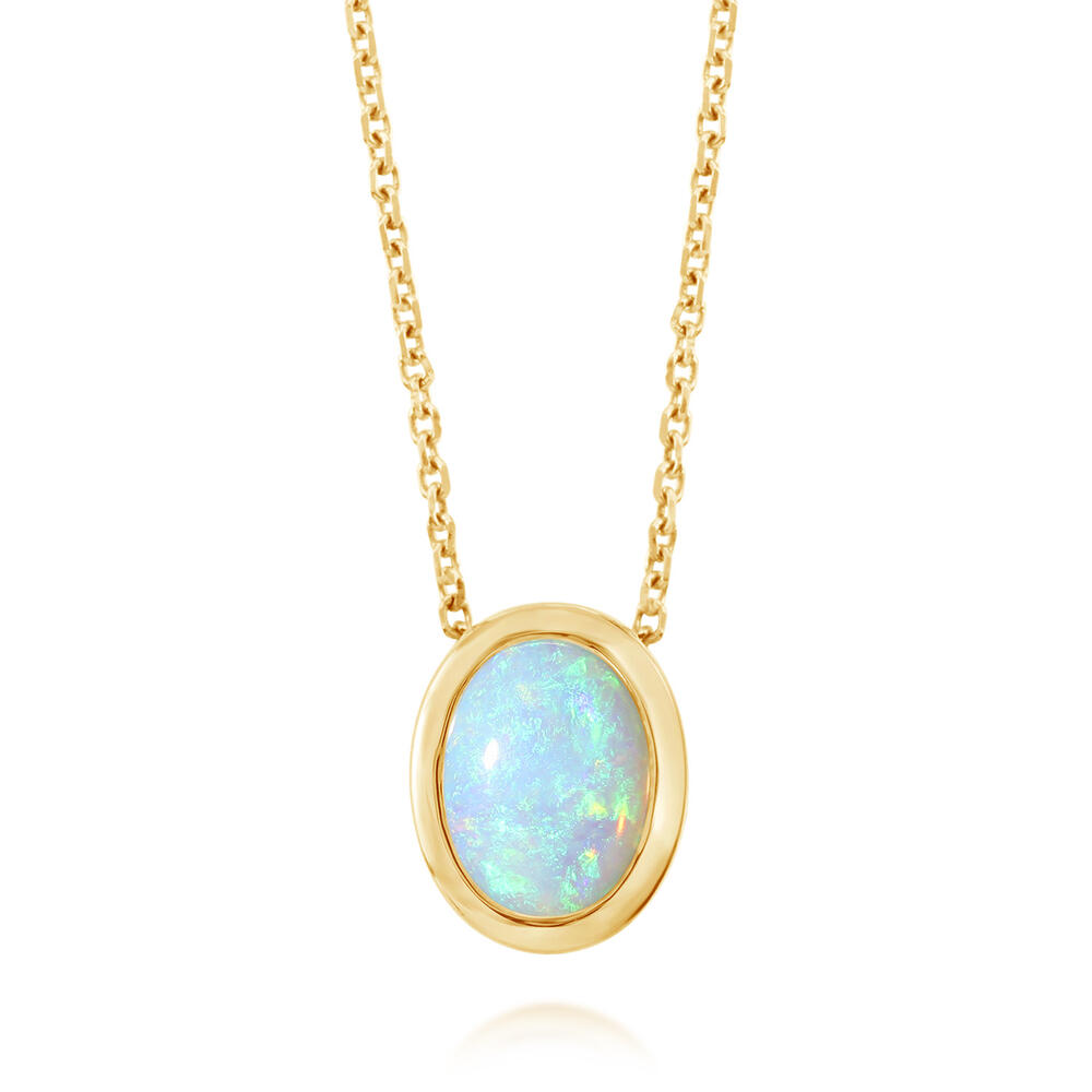 14K Yellow Gold Australian Opal Pendant. Pendant does not include a chain unless specified. Total gem weight: 0.75 ct.