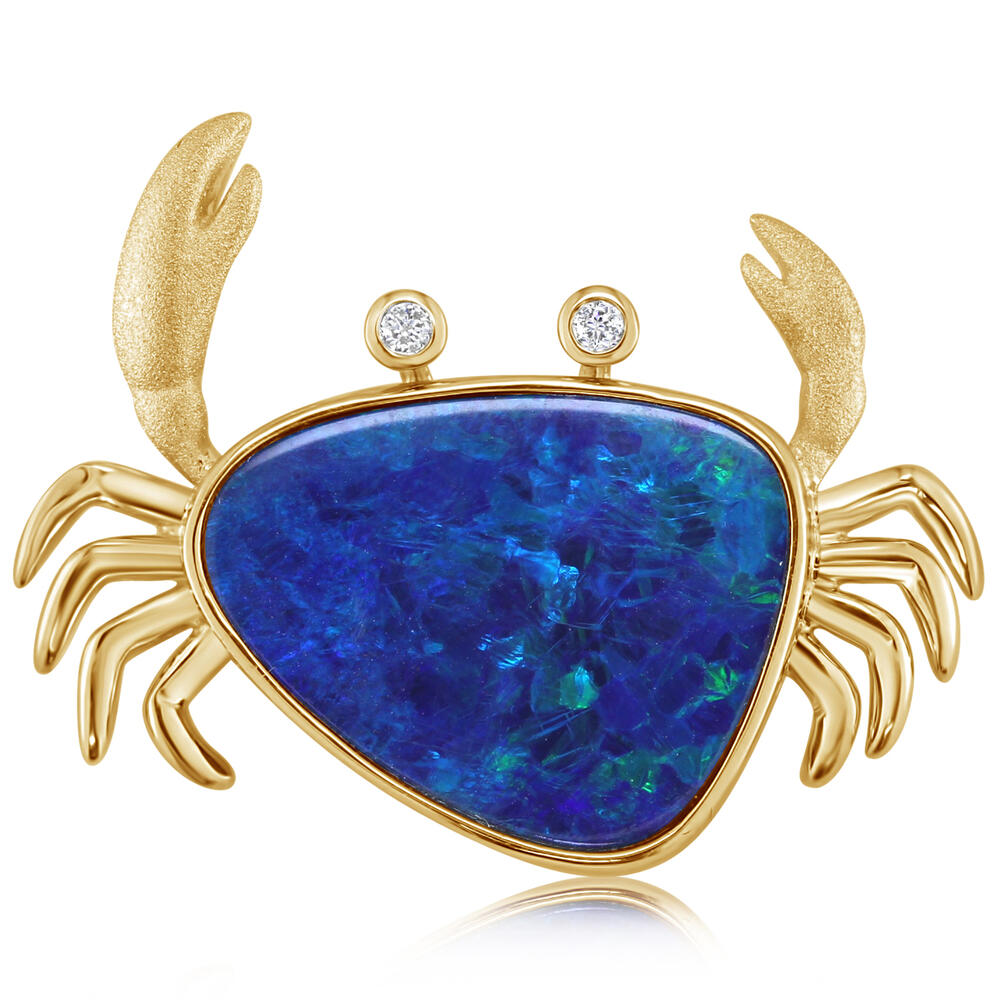 14K Yellow Gold Australian Opal Doublet/Diamond Crab Pendant. Pendant does not include a chain unless specified. Sample Image. Actual piece might differ from current image. Total gem weight: Varies