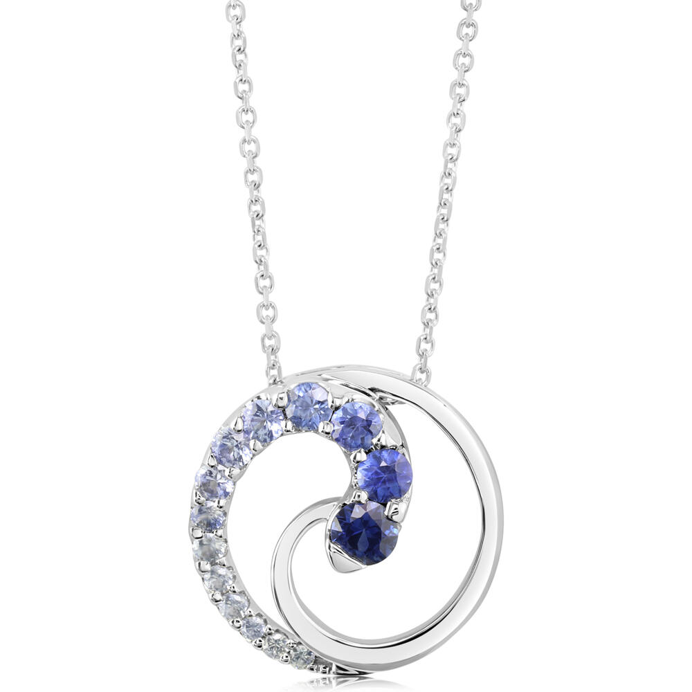 14K White Gold Graduated Blue Sapphire Pendant. Pendant does not include a chain unless specified. Total gem weight: 0.90 ct.