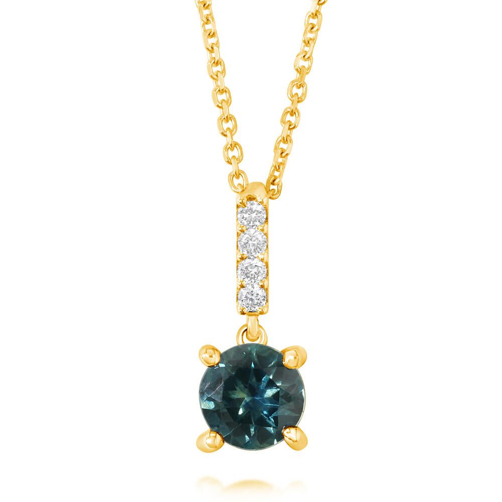 14K Yellow Gold Montana Sapphire/Diamond Pendant. Pendant does not include a chain unless specified. Total gem weight: 1.08 ct.