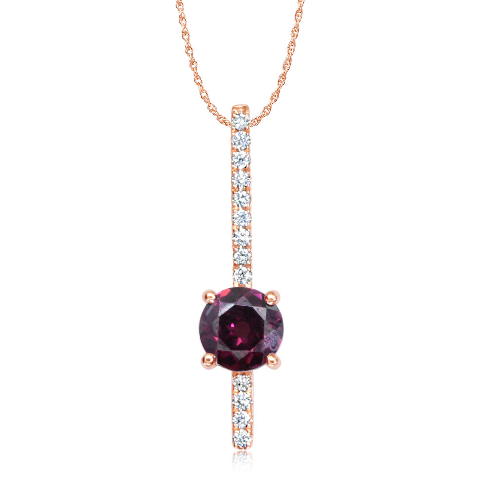 14K Rose Gold Rhodolite Garnet/Diamond Pendant. Pendant does not include a chain unless specified. Total gem weight: 1.35 ct.