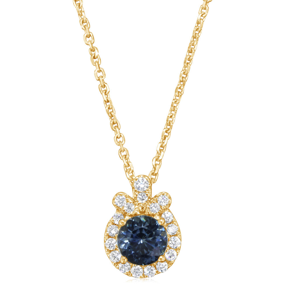 14K Yellow Gold Montana Sapphire/Diamond Pendant. Pendant does not include a chain unless specified. Total gem weight: 0.59 ct.