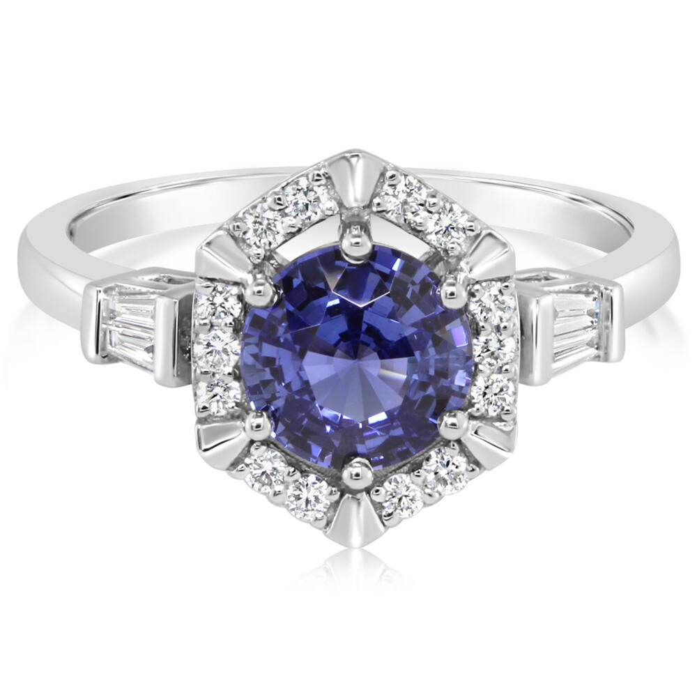 Platinum Ceylon Sapphire/Diamond Ring. This is a one of a kind piece. Total gem weight: 1.52 ct.