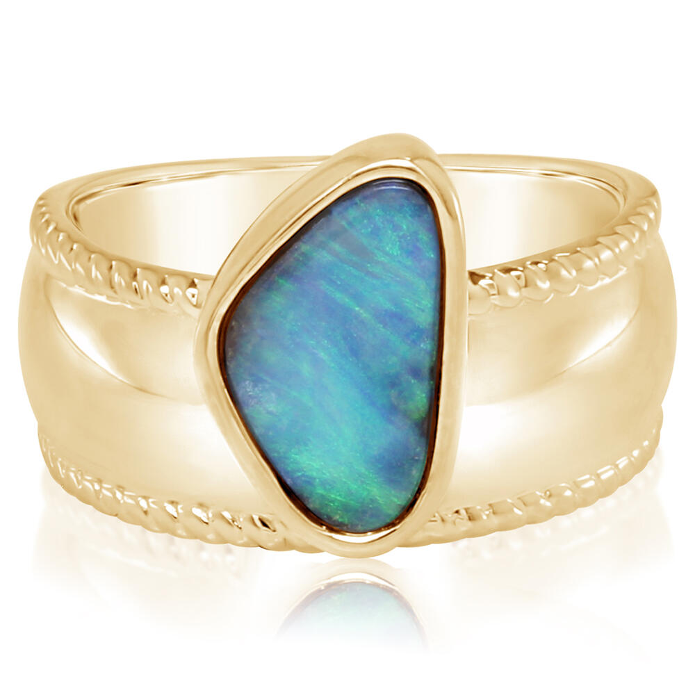 14K Yellow Gold Australian Boulder Opal Ring. Sample Image. Actual piece might differ from current image. Total gem weight: Varies