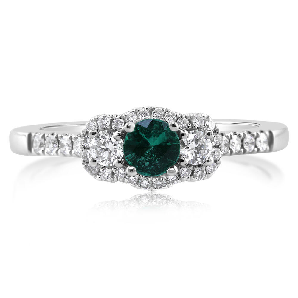14K White Gold Emerald/Diamond Ring. Total gem weight: 0.22 ct.