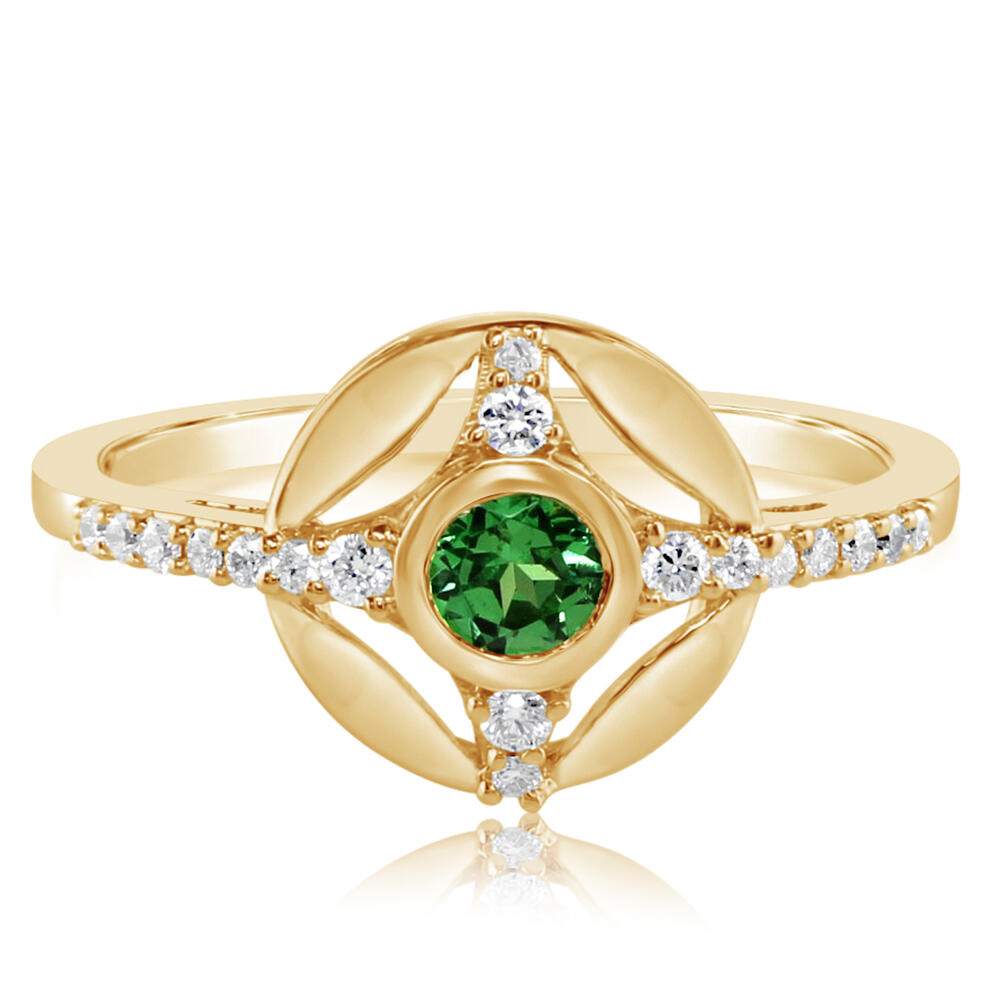 14K Yellow Gold Tsavorite Garnet/Diamond Ring. Total gem weight: 0.30 ct.