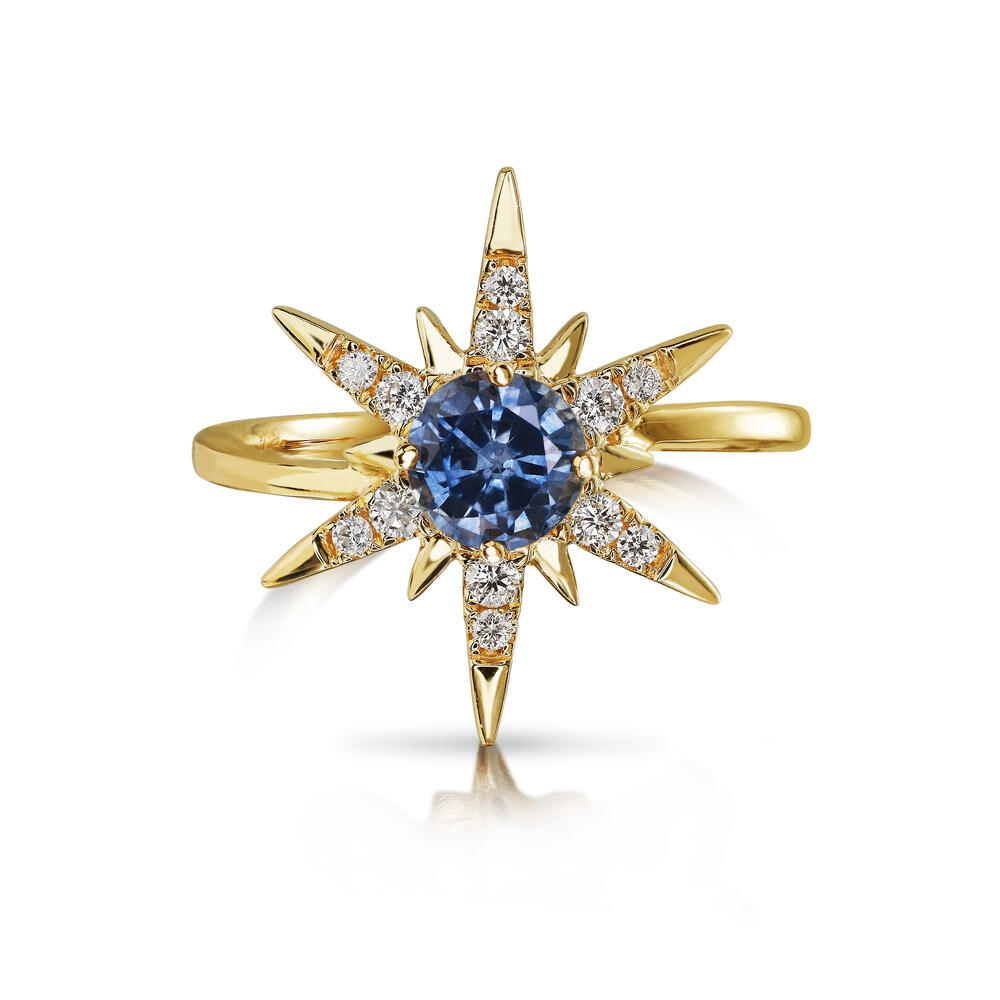 14K Yellow Gold Montana Sapphire/Diamond Star Ring. Total gem weight: 0.97 ct.