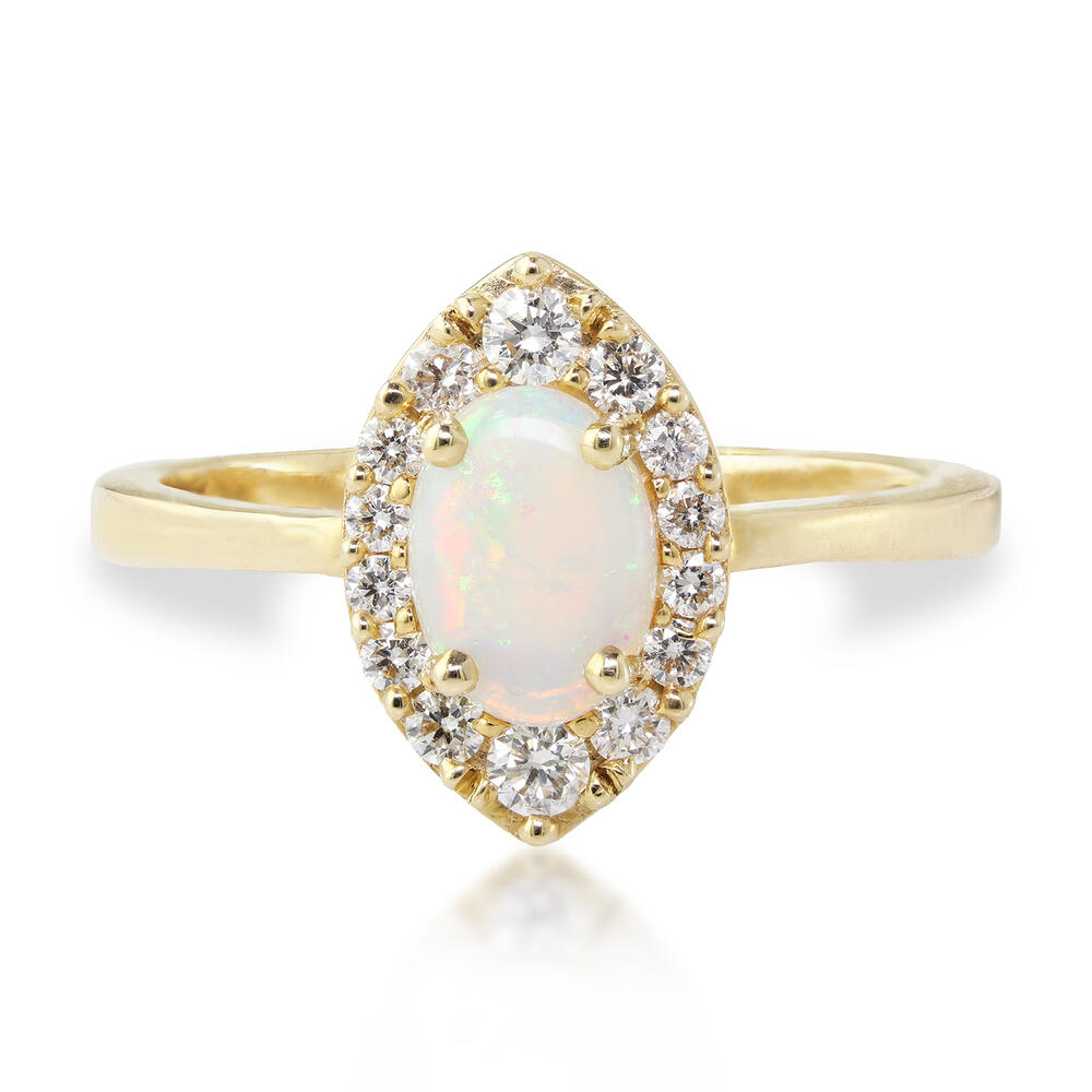 14K Yellow Gold Australian Opal/Diamond Ring. Total gem weight: 0.46 ct.