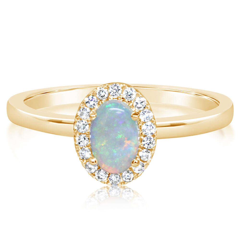 14K Yellow Gold Australian Opal/Diamond Ring. Total gem weight: 0.27 ct.