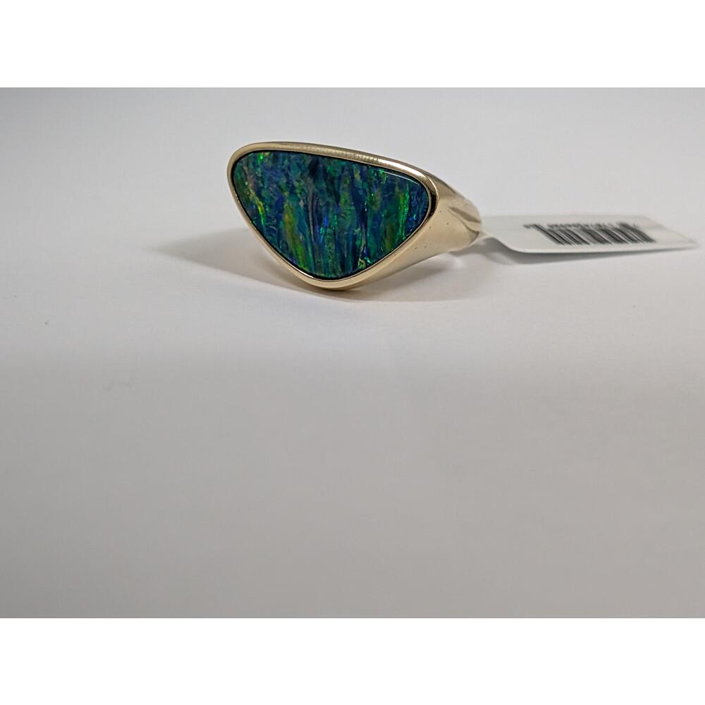 18K Yellow Gold Australian Opal Doublet Ring. This is a one of a kind piece. Total gem weight: 6.10 ct.