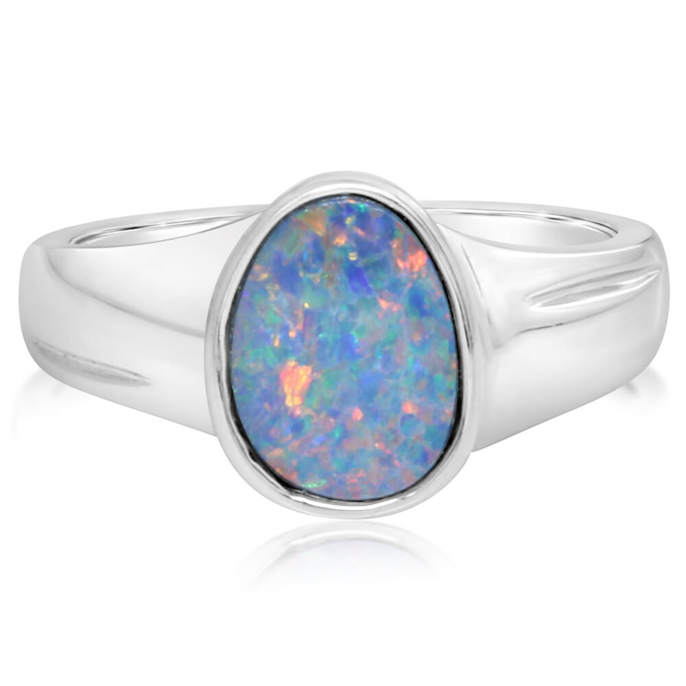 14K White Gold Australian Opal Doublet Ring. Sample Image. Actual piece might differ from current image. Total gem weight: Varies