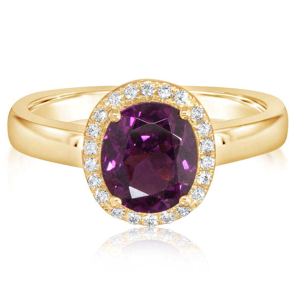 14K Yellow Gold Oval Rhodolite/Diamond Ring. This is a one of a kind piece. Total gem weight: 1.94 ct.