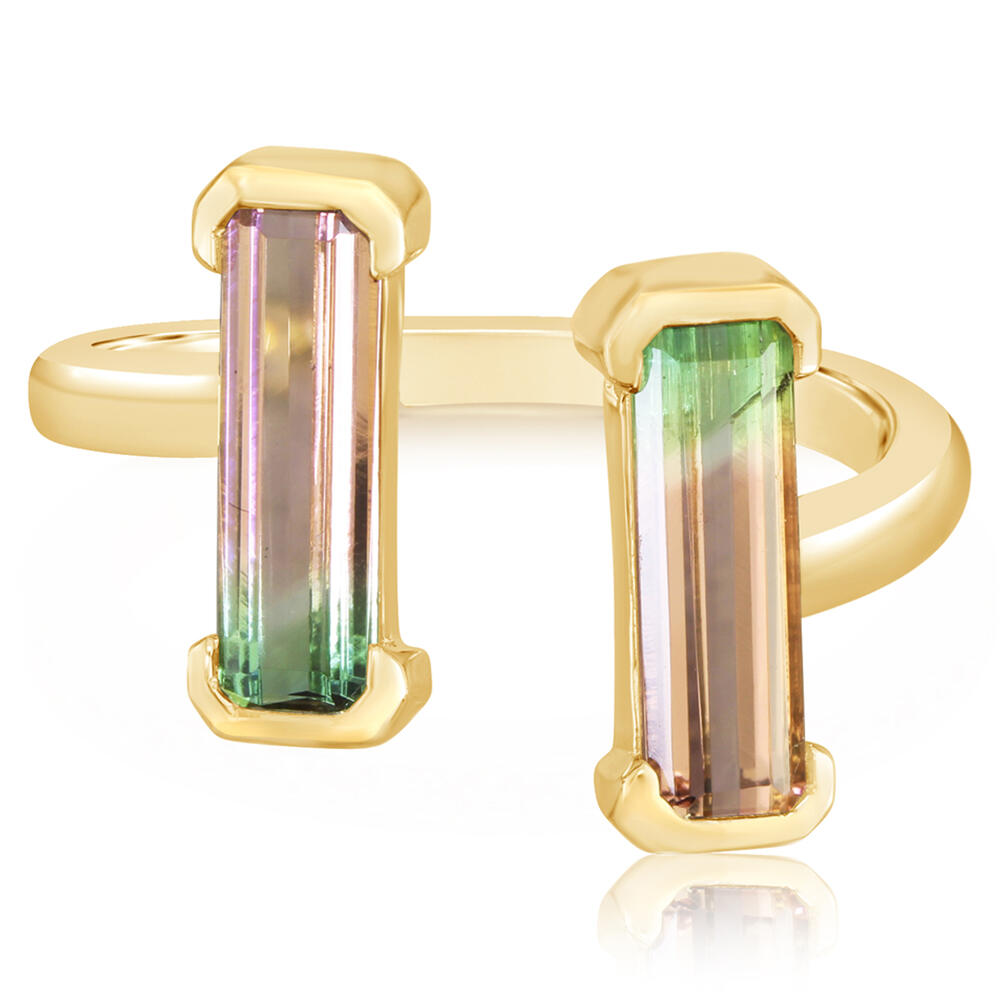 14K Yellow Gold Bi-Color Tourmaline Ring. This is a one of a kind piece. Total gem weight: 1.81 ct.