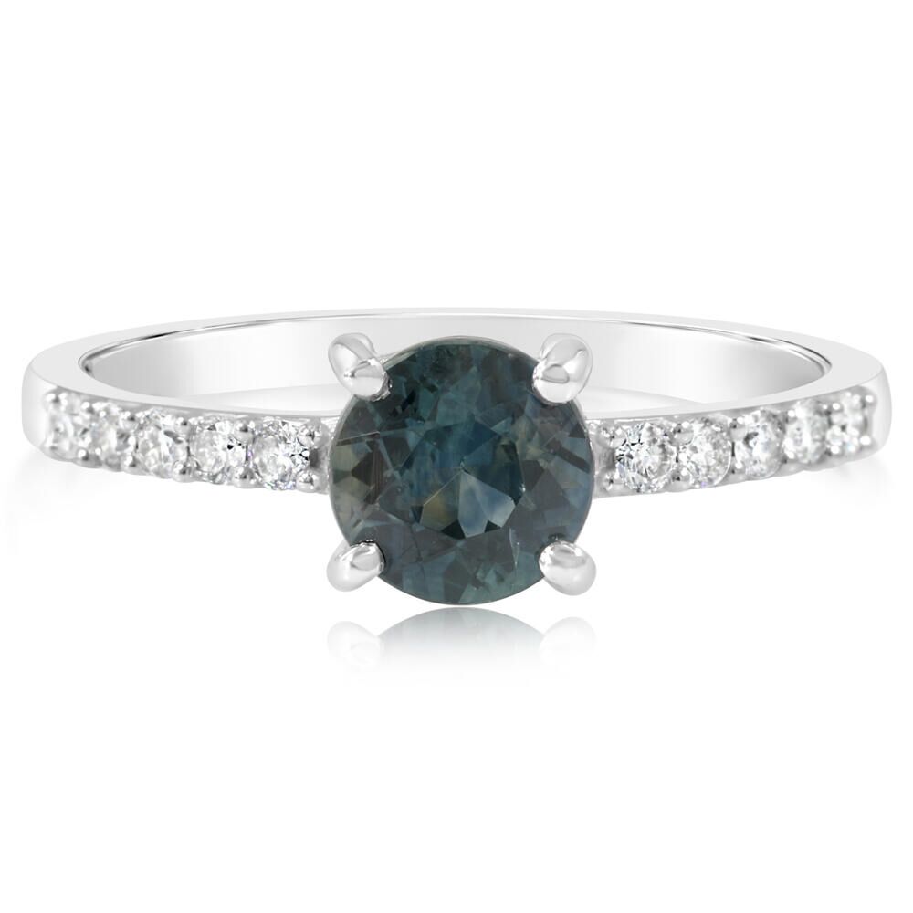 14K White Gold Montana Sapphire/Diamond Ring. Total gem weight: 1.08 ct.