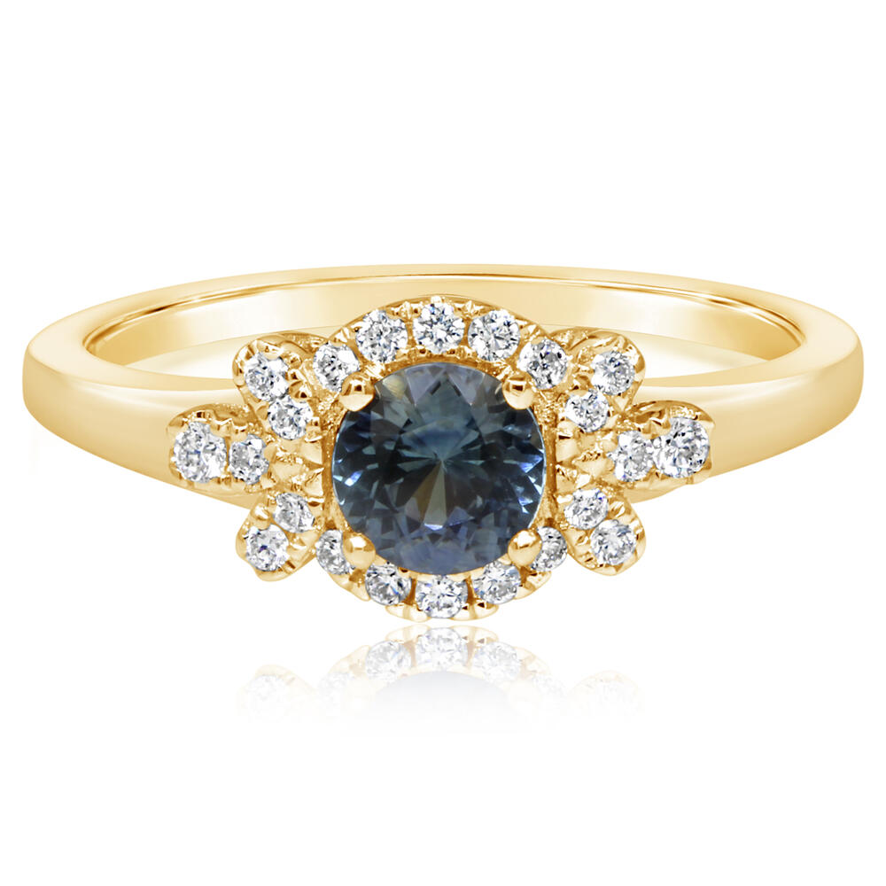 14K Yellow Gold Montana Sapphire/Diamond Ring. Total gem weight: 0.59 ct.