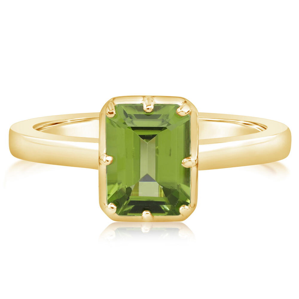 14K Yellow Gold 8x6mm Octagon Peridot Ring. Total gem weight: 1.60 ct.